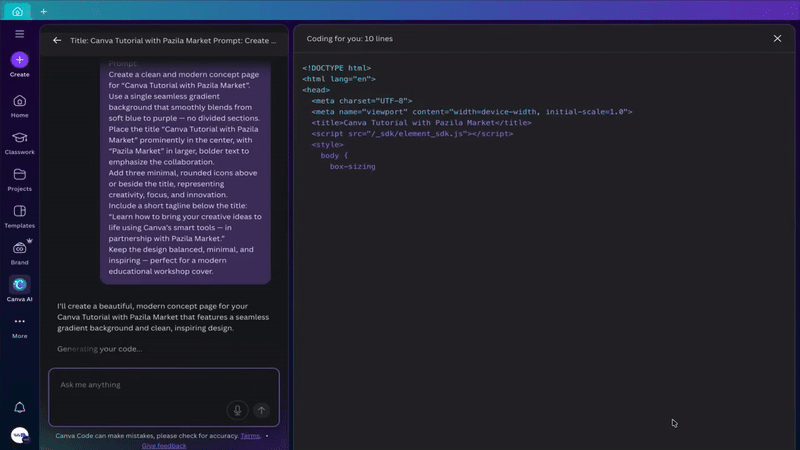 در کنار آن، Canva Code نسل تازه‌ای از ابزارهای تعاملی است که به کاربران اجازه می‌دهد اجزای قابل کلیک، فرم‌های تعاملی و المان‌های داینامیک را مستقیماً در طرح‌های خود ایجاد کنند. این ویژگی برای آموزش‌های آنلاین، ارائه‌های تعاملی و ساخت صفحات فرود (Landing Pages) کاربردی است؛ بدون نیاز به حتی یک خط کد.