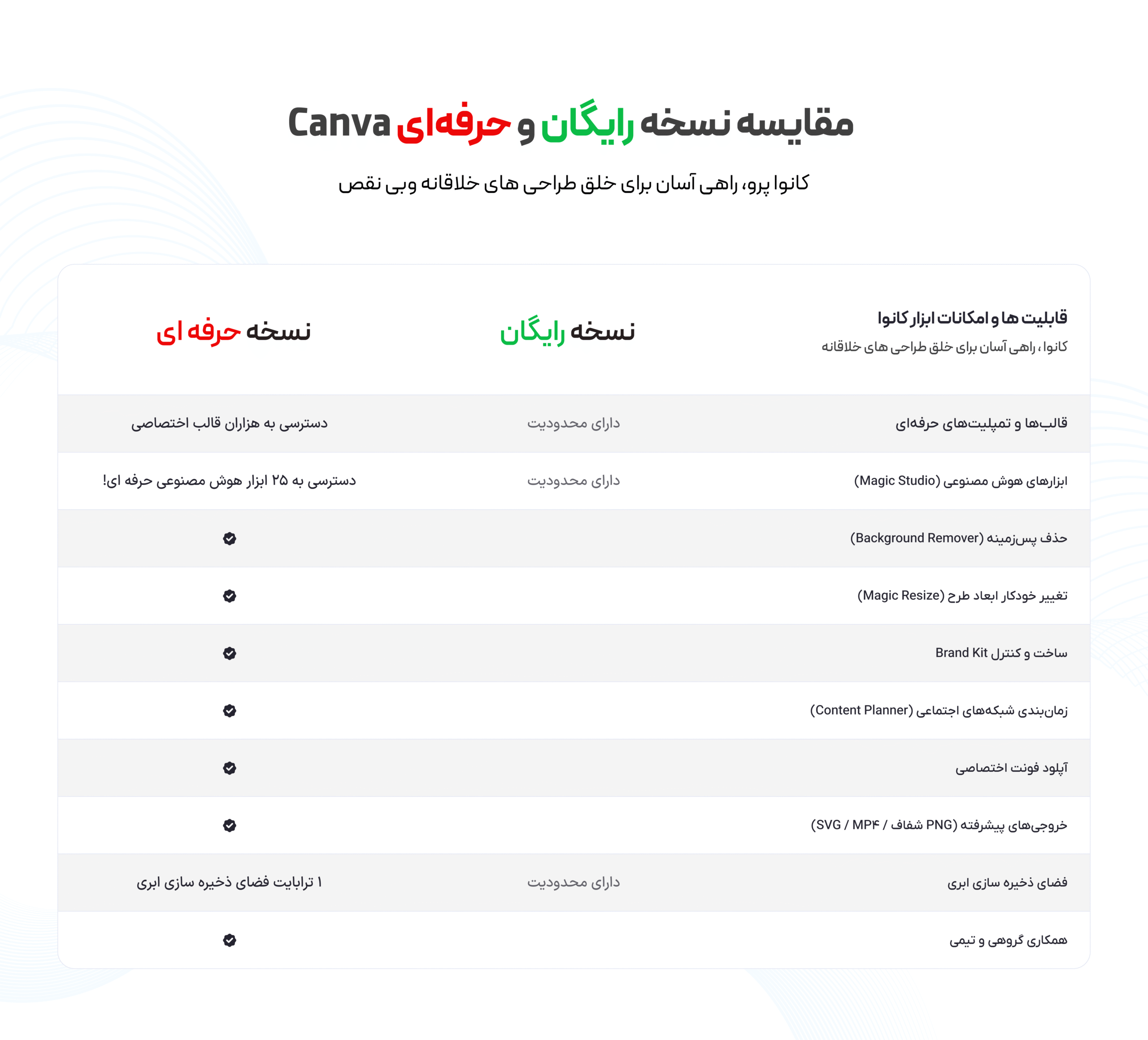تفاوت نسخه رایگان و حرفه‌ای Canva